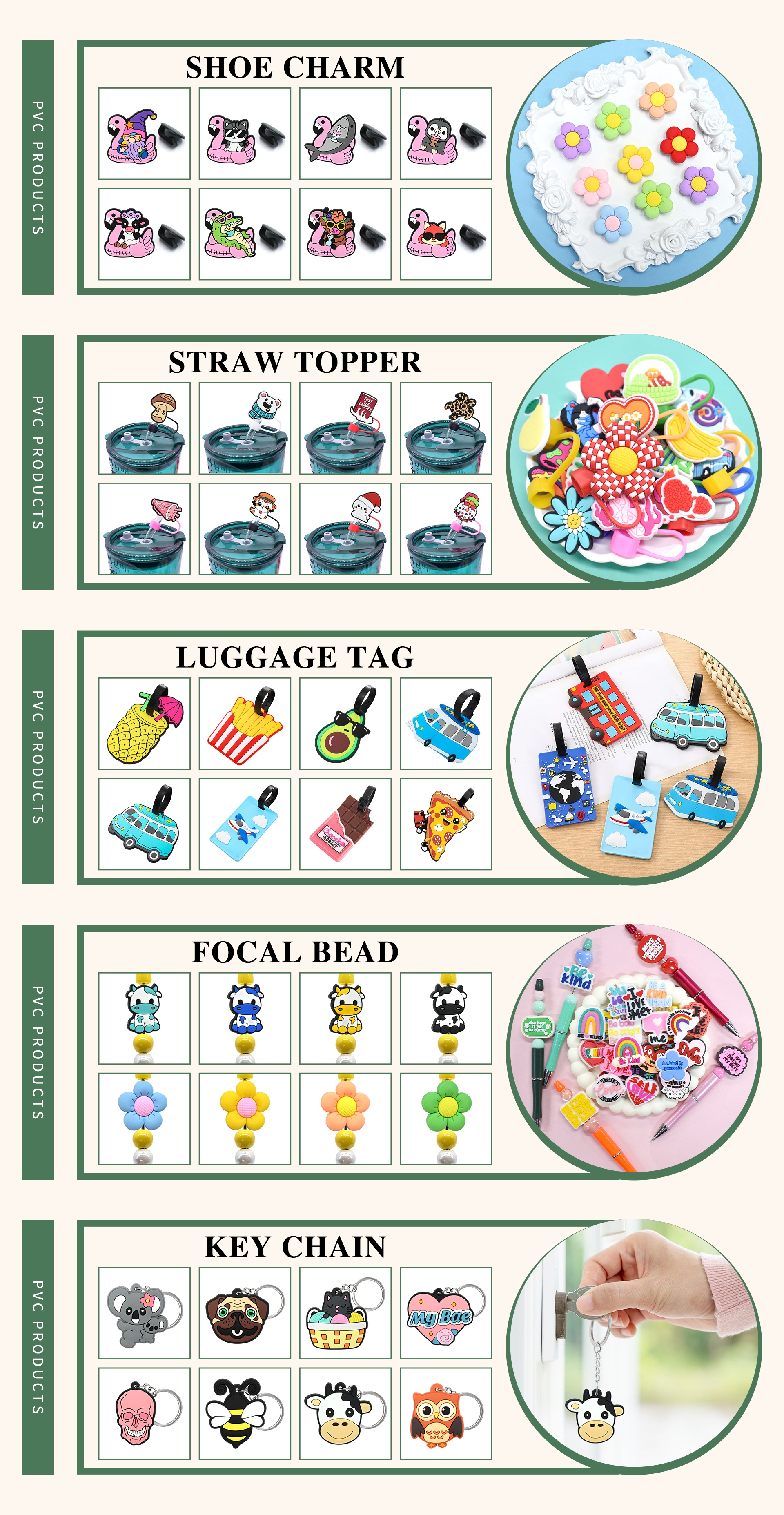 Main categories: Shoe Charms, Straw Toppers, Focal Beads, Enamel Pins, Key Chains